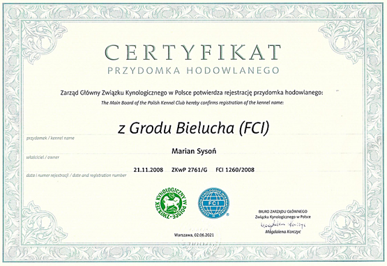 z przydomkiem hodowlanym "z Grodu Bielucha" pod nr. 2761/g
